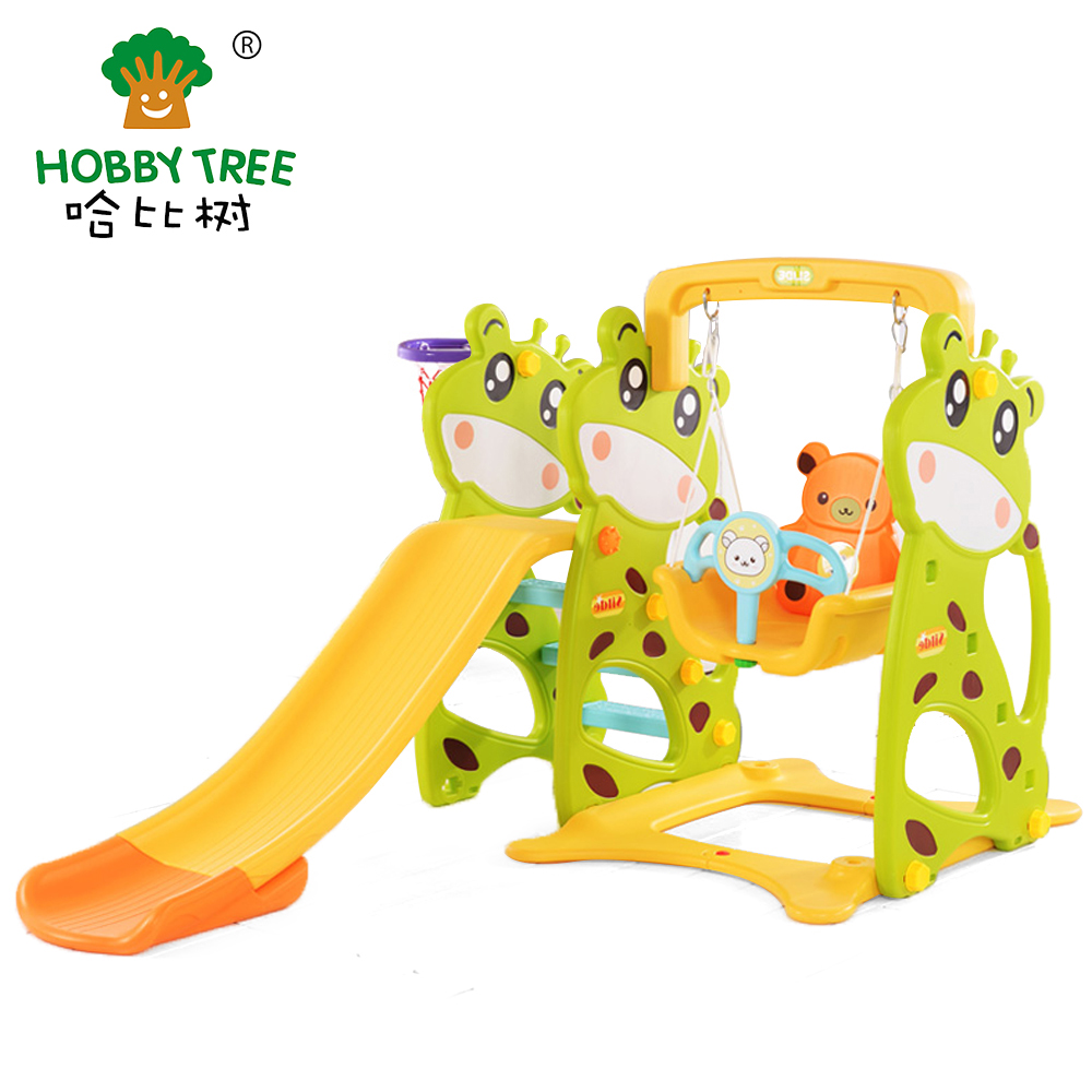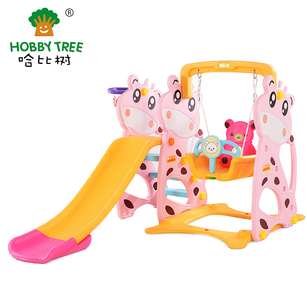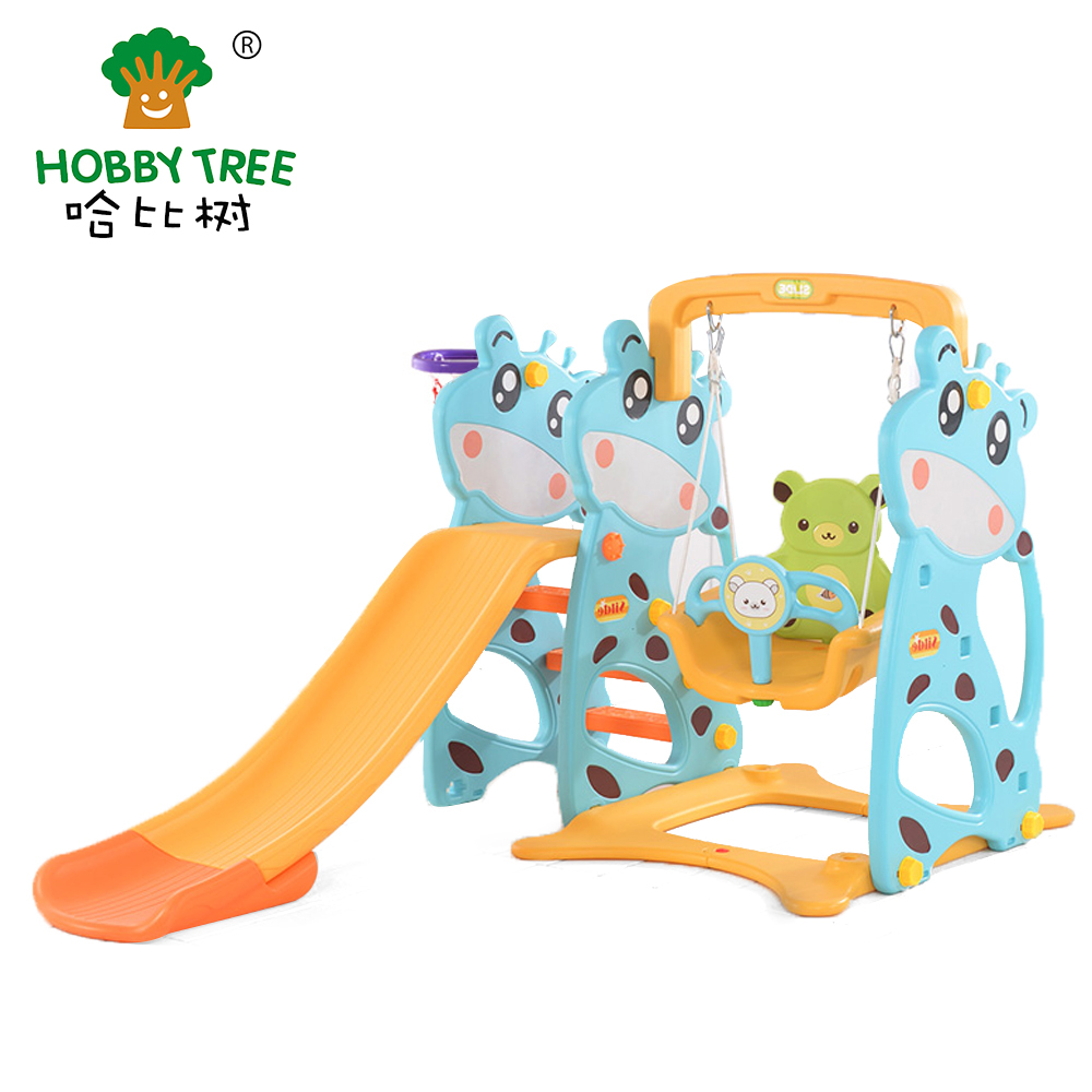 小熊主题室内塑料滑梯与秋千组合 HBS18039